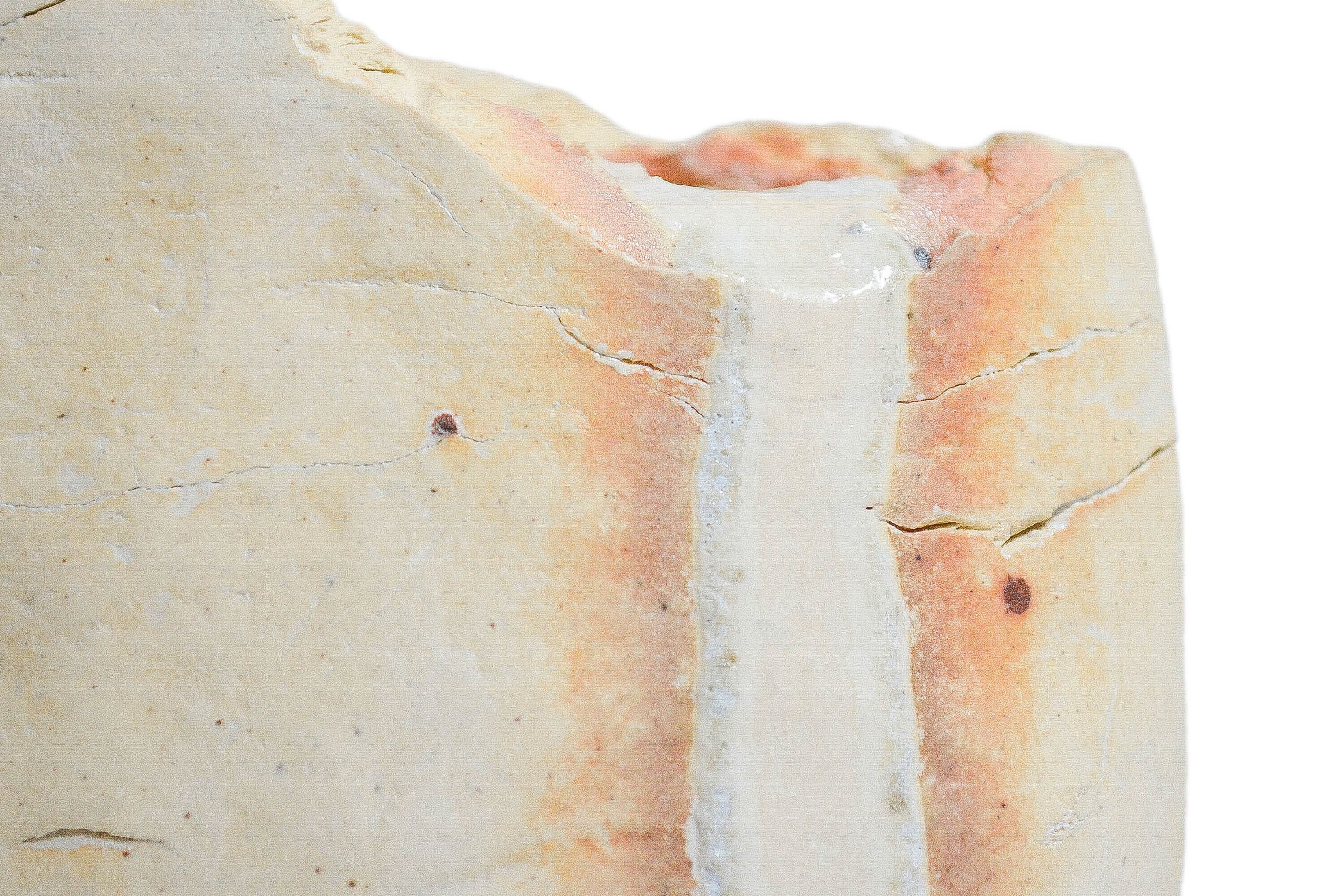 *何層にも薄い土を重ねて作られている陶芸作品です。表層が欠けても中の層が表出してきます。年月と共に変化していく風合いをお楽しみ下さい。